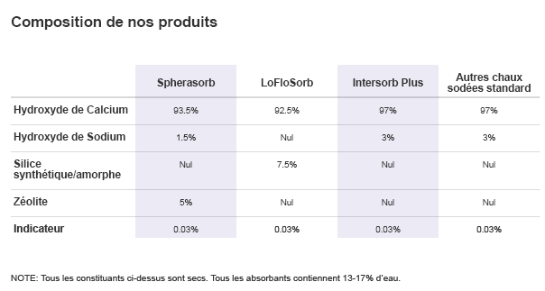La formule chimique de Spherasorb™ a été spécifiquement conçue pour garantir une protection complète d'utilisation dans un environnement médical tout en maintenant une capacité d'absorption de CO2 la plus élevée possible.