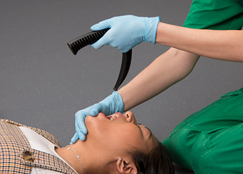 Contrairement à un laryngoscope standard, la conception monobloc innovante du LiteScope élimine le besoin de connecter un manche et une lame séparés, pour ainsi gagner un temps précieux en cas d’urgence. Prenant pour modèle une lame Macintosh taille 4, la technique d’insertion est la même que celle pour n’importe quel laryngoscope standard pourvu d’une lame Macintosh.