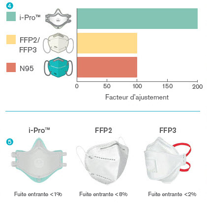À l’origine, les masques de protection personnelle classiques étaient conçus pour un usage en milieu industriel et ne sont, de fait, pas toujours adaptés aux professionnels de santé. Ceci a fait l’objet de nombreux rapports d’incident. Le masque i-Pro™ a été conçu en gardant les cliniciens à l'esprit. Grâce au média filtrant de nos dispositifs respiratoires, dont l'efficacité bactérienne et virale en environnement clinique a été prouvée, ainsi qu'à la lèvre étanche douce et souple en TPE équipant nos masques, le masque i-Pro™ combine un haut taux de protection avec un ajustement confortable et efficace.